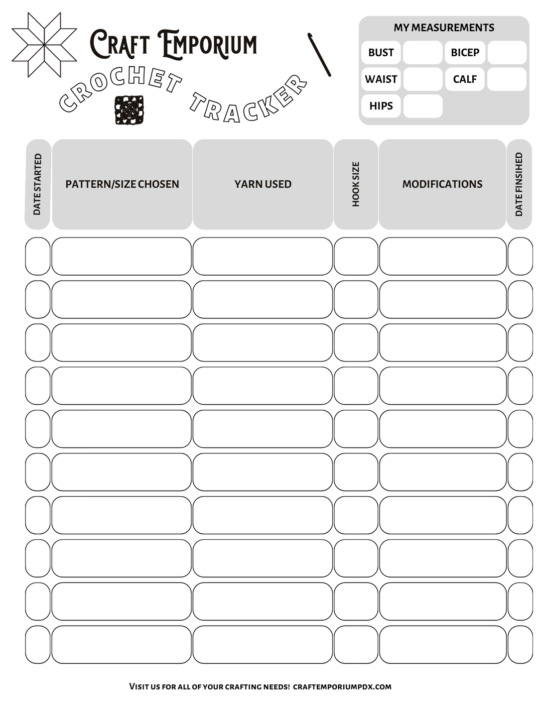 Craft Emporium Crochet Project Tracker - FREE!