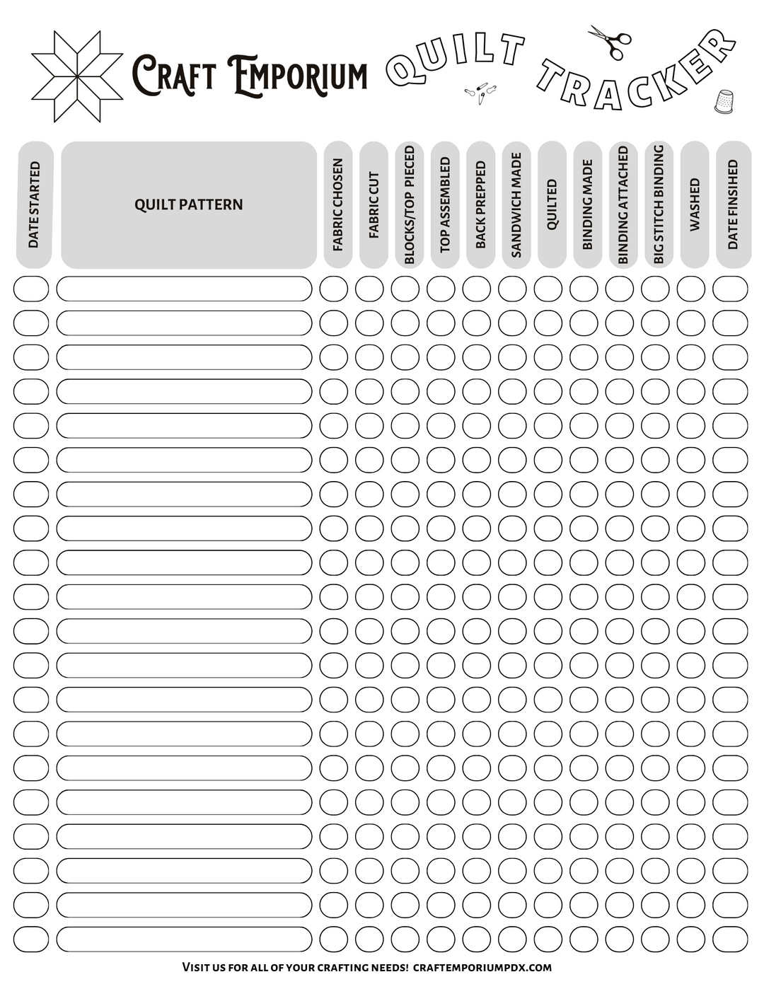Craft Emporium Quilt Project Tracker - FREE!