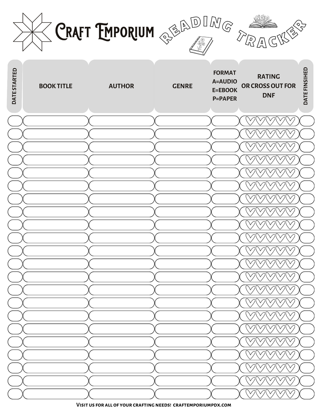 Craft Emporium Reading Tracker - FREE!