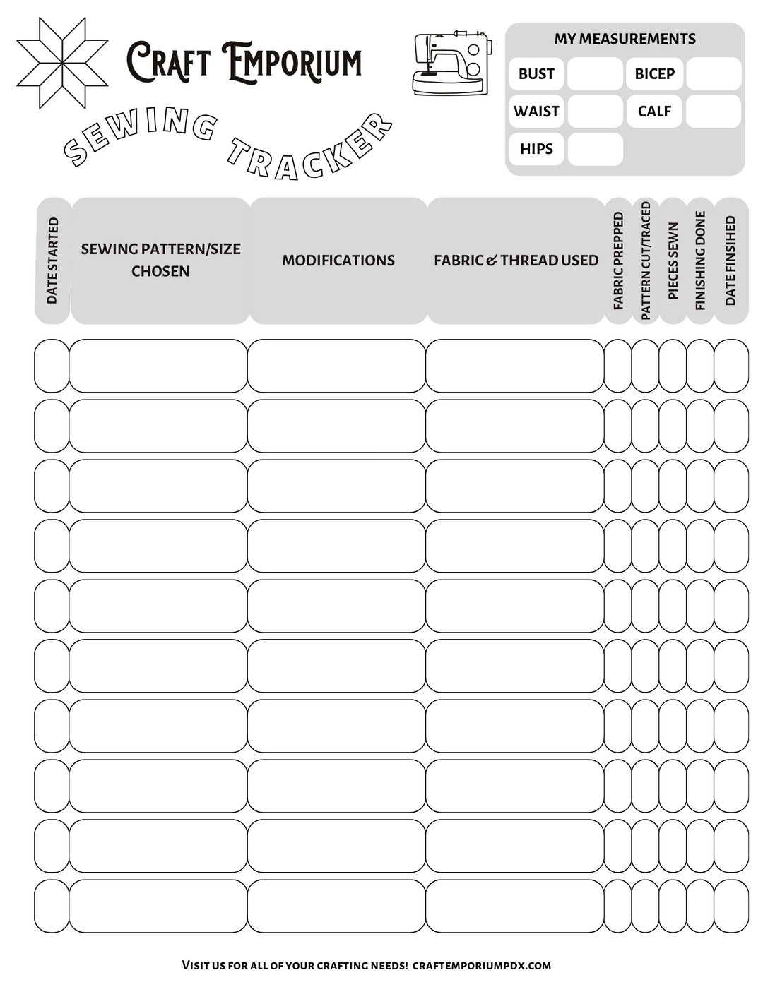 Craft Emporium Sewing Project Tracker - FREE!